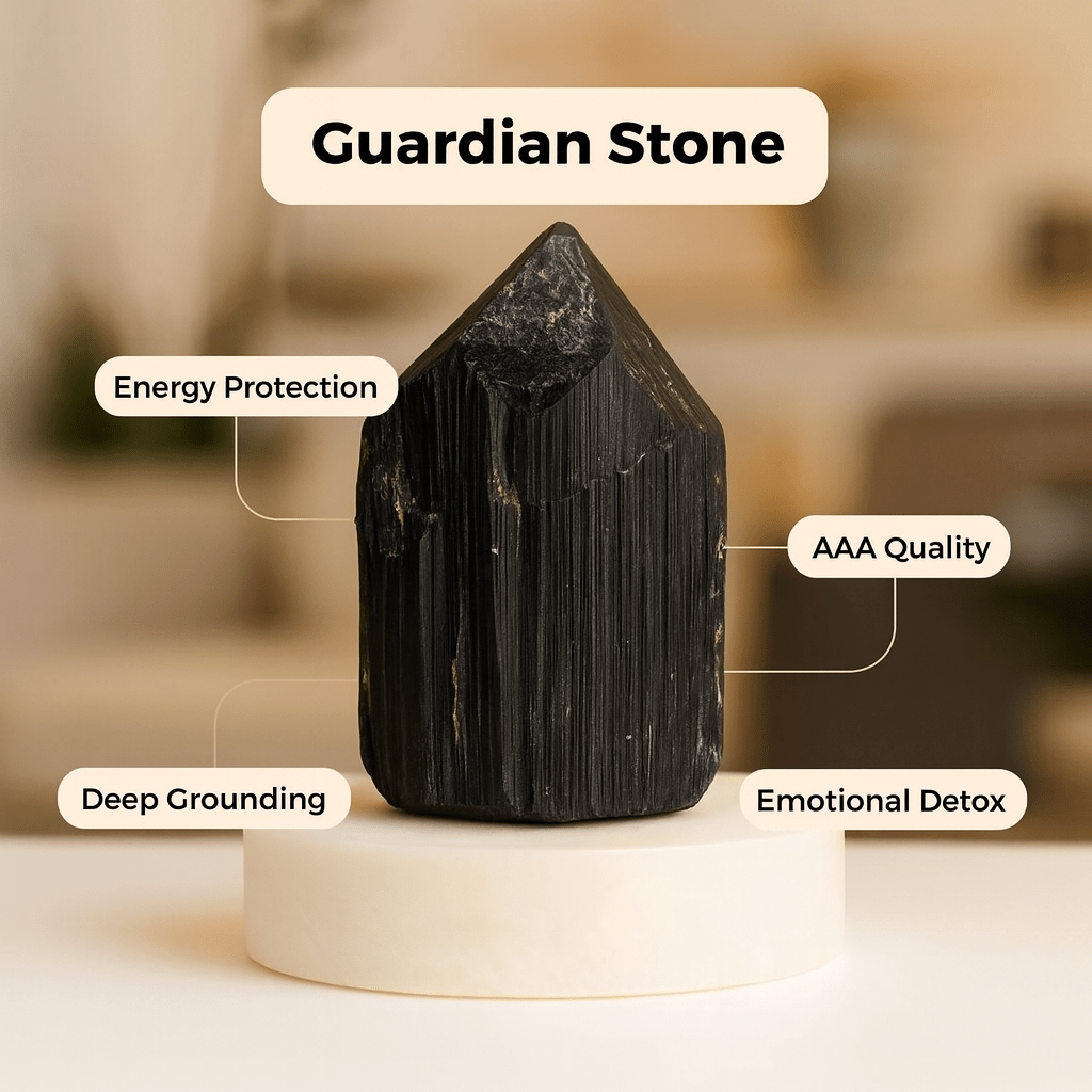 Forged deep within the Earth, the Guardian Stone is more than just a raw stone—it’s a sanctuary in your palm. Carved only by nature, this AAA-quality Black Tourmaline freeform stone brings powerful grounding, protection, and energetic cleansing wherever you place it.