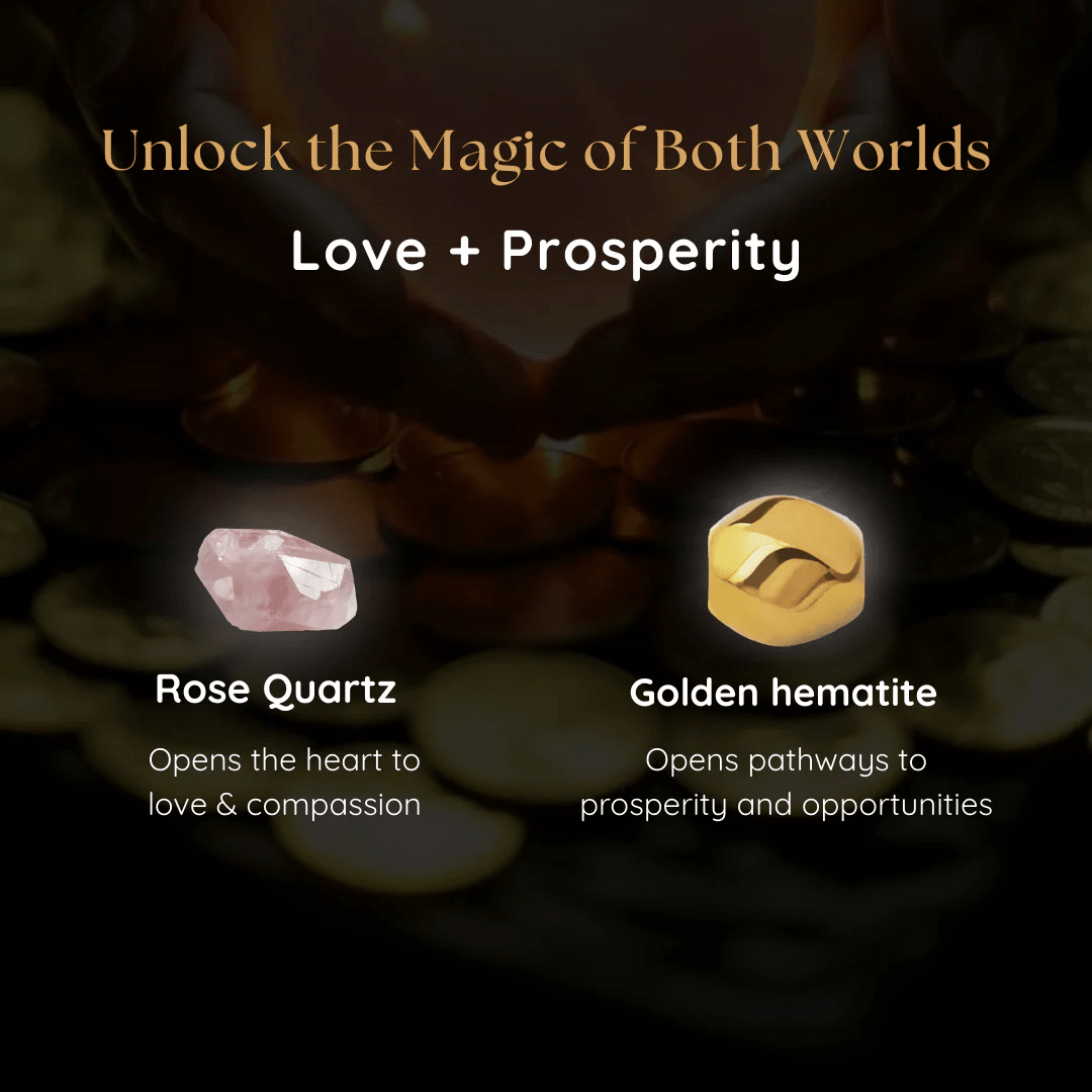 The Love & Money Magnet Bracelet is a powerful fusion of two energies—unconditional love and magnetic prosperity. Handcrafted with Rose Quartz and Golden Hematite, this bracelet balances the heart while drawing opportunities for wealth and success.