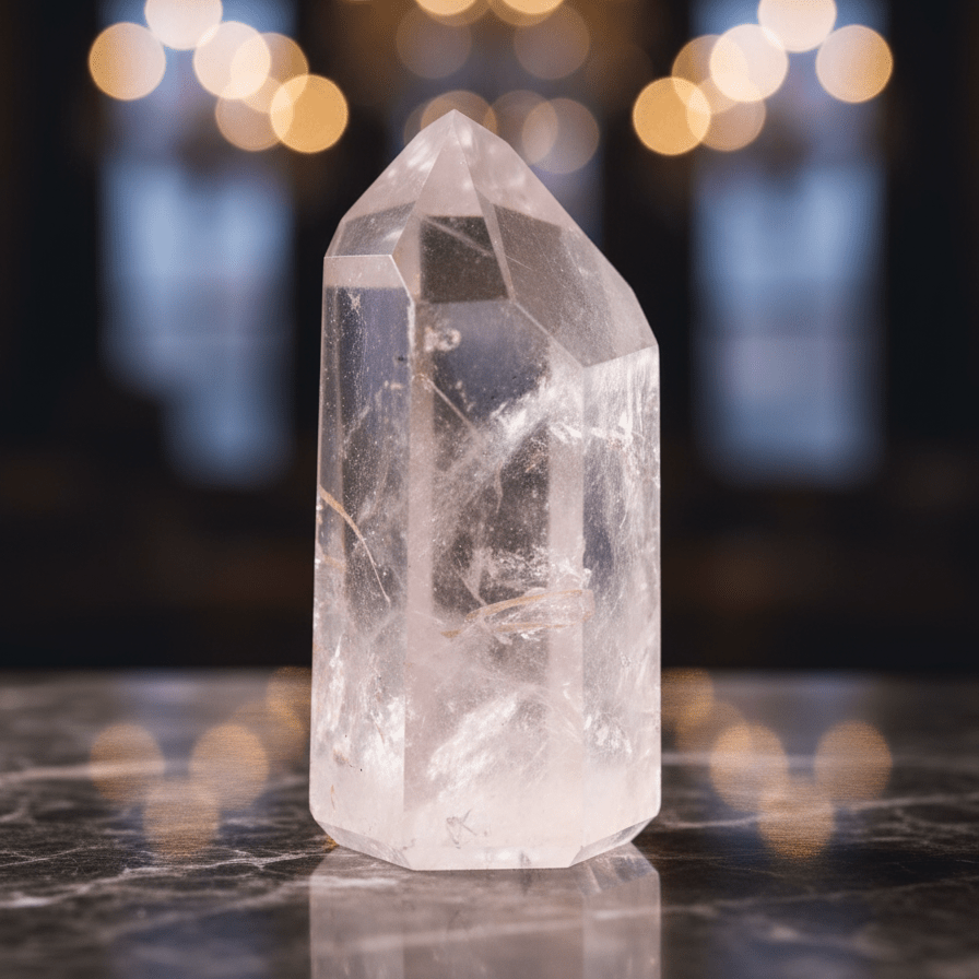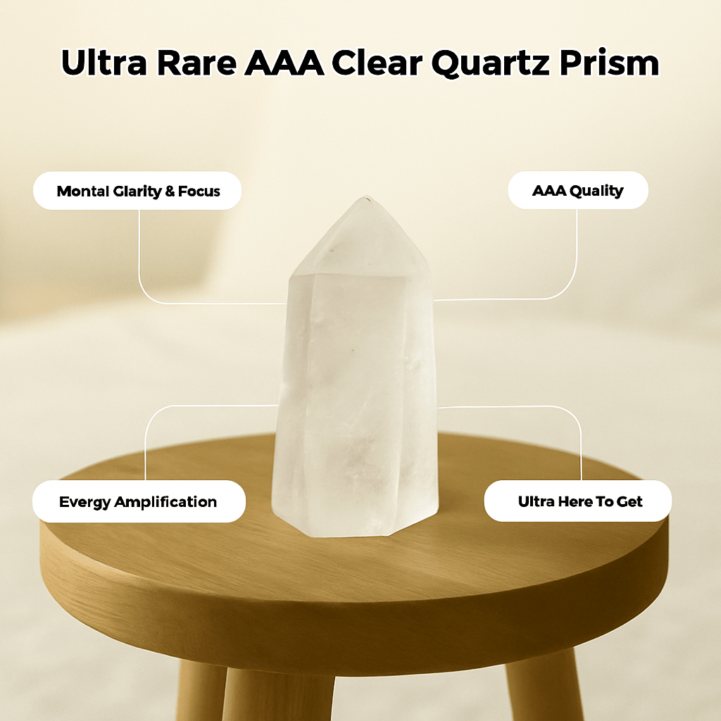 AAA Quality Grade — Extra-clear quartz with minimal inclusions; cut and polished into prism form to optimize brilliance and energy flow.