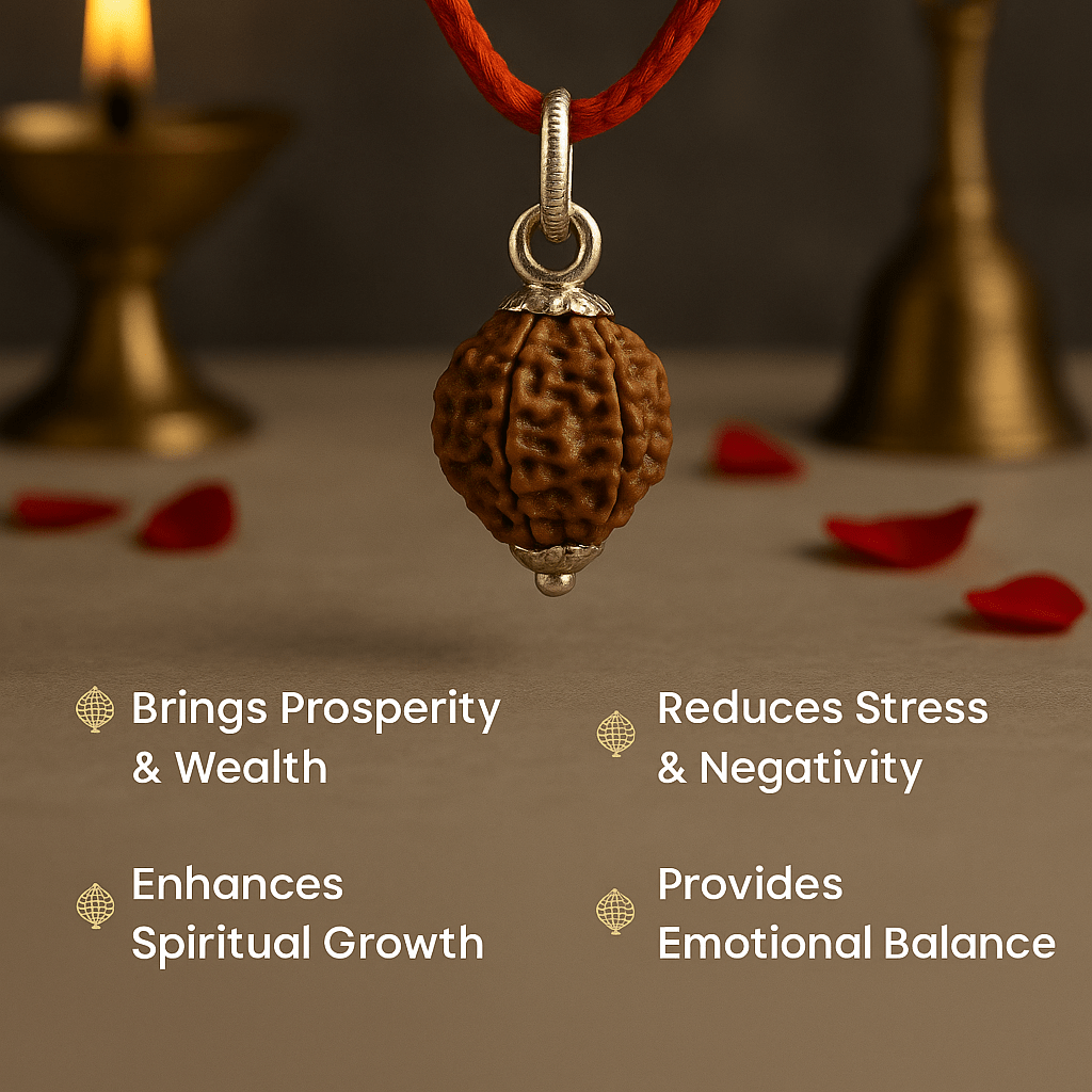 The 7 Mukhi Rudraksha is blessed by Goddess Mahalakshmi, the goddess of wealth and prosperity. It removes financial struggles, helps attract abundance, and provides stability in career and business. It also protects from sorrow and misfortune.